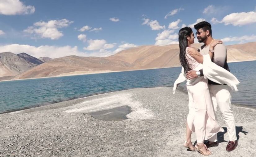 After breakfast, drive from Nubra Valley to Pangong Lake (approximately 5-6 hours). En route, enjoy the stunning views of barren landscapes and high-altitude deserts. Upon arrival at Pangong Lake (14,270 feet), be enchanted by the lake's ever-changing hues of blue. The stunning landscape, with its crystal-clear water surrounded by mountains, creates a perfect romantic atmosphere. Spend time by the lake, take photos, and simply enjoy the peaceful surroundings. Stay overnight in camps or guesthouses near Pangong Lake, with the romantic serenity of the place making for a perfect evening with your loved one.